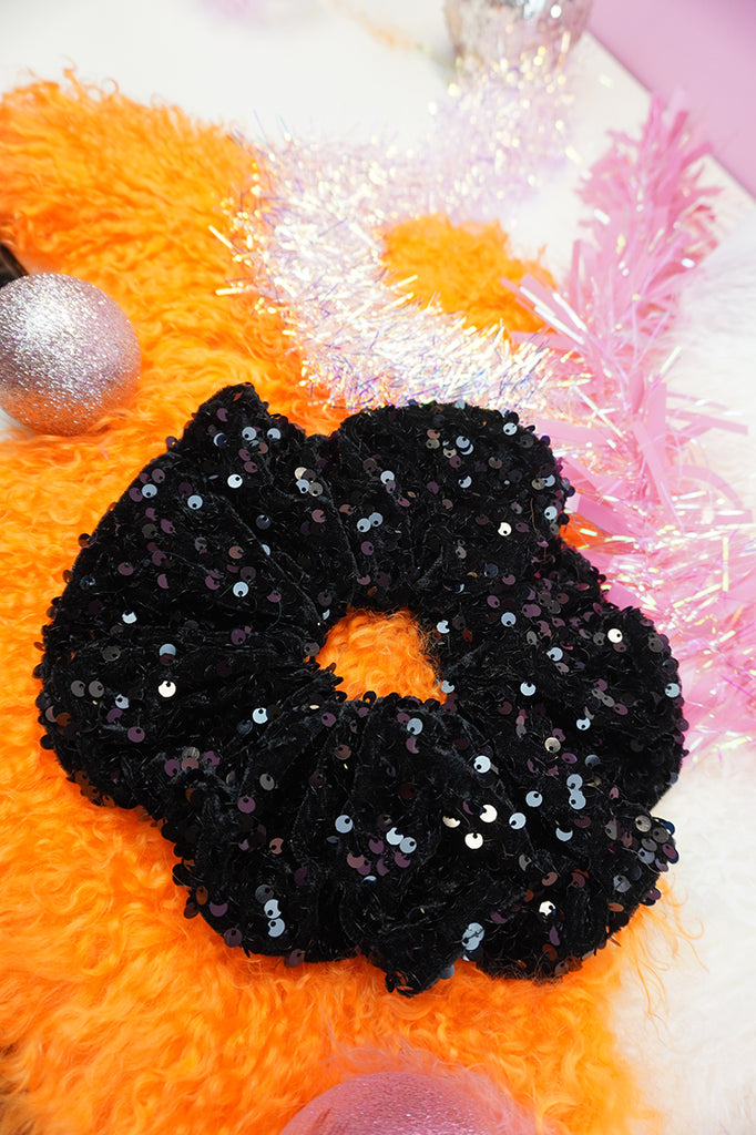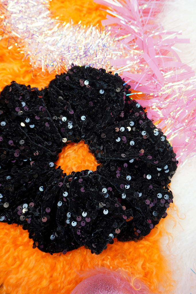 This listing is for our Midnight Black Sequin Super sized scrunchie.