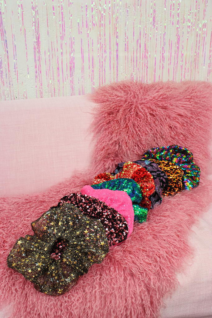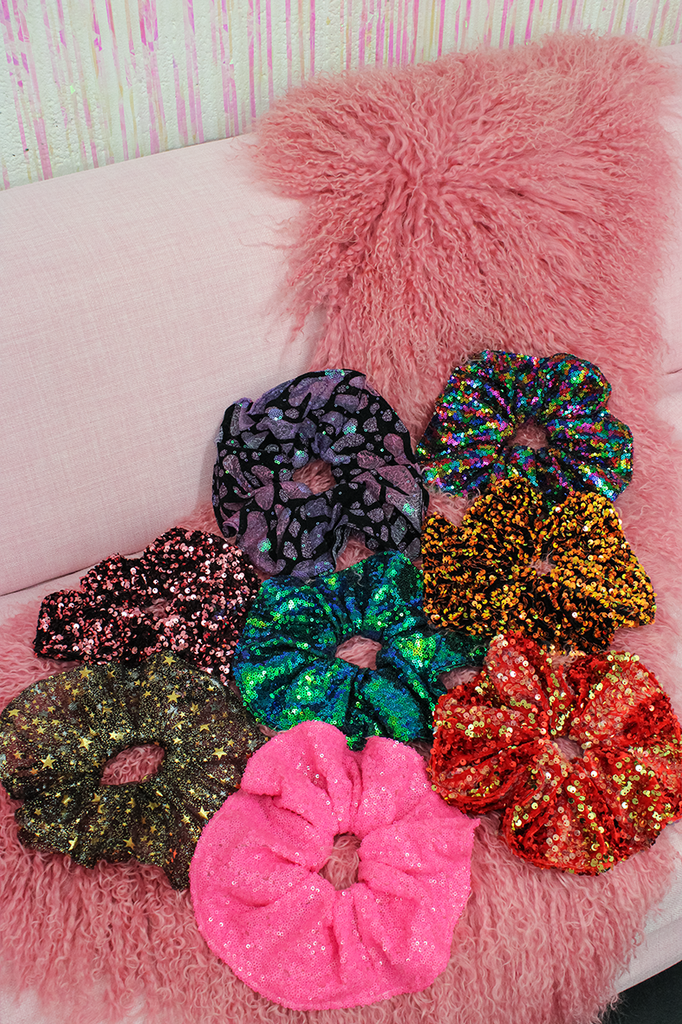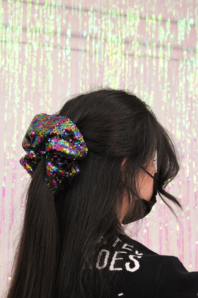 This listing is for our Rainbow Sequin Super sized scrunchie.